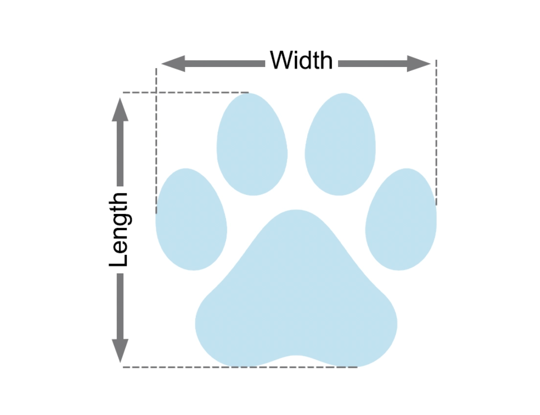 Mark the widest and longest parts of the paw, then use a ruler to measure these distances.