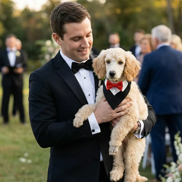 My pup looked so classy in his new collar at my sister’s wedding! It stayed on all day, super comfy. Got lots of compliments.