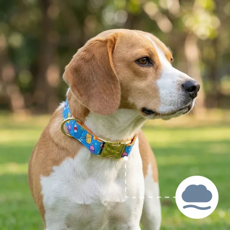 My dog Fido loves his new collar! The bright colors are super, and it hasn’t slipped off once during park trips. He fits comfortably in it.