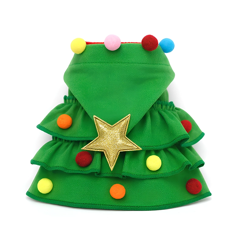 cat christmas tree costume, cat christmas hooded coat, cat christmas hooded cloak,
