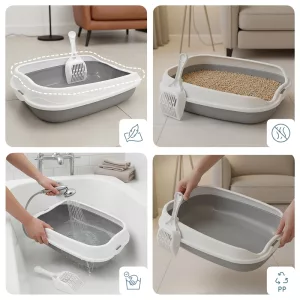 Cat Litter Box High-Sided Tray with Scoop
