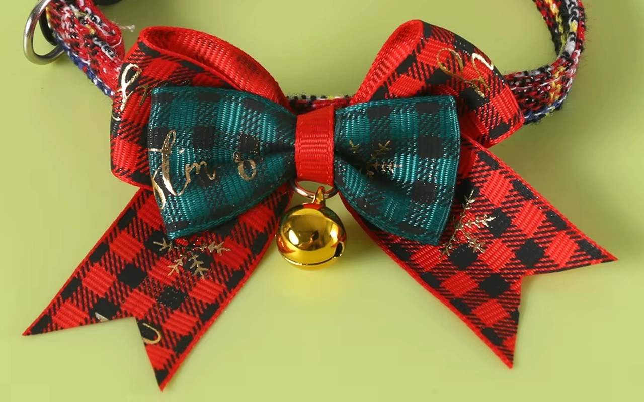 My cat looks extra cute this Christmas with her new bow! The plaid pattern is super fun, and the golden bell jingles when she runs around.