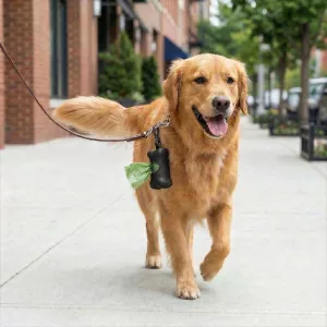 Got this pouch for evening walks with our lab. It clips tightly to the leash and I never fumble for bags anymore.