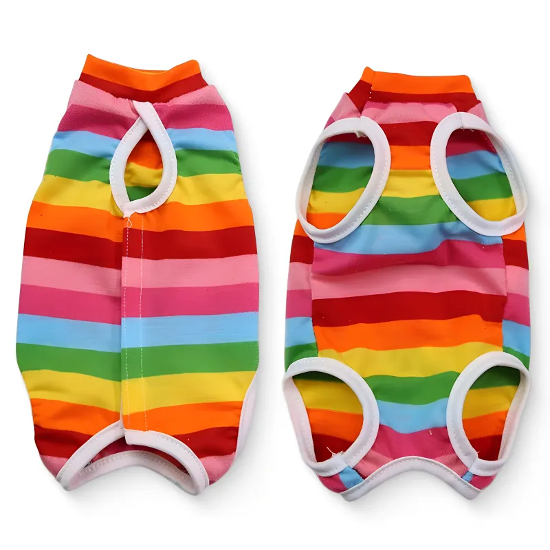 Our cat recovery suit features playful prints and bright colours. Turn healing time into a stylish, cheerful experience.
