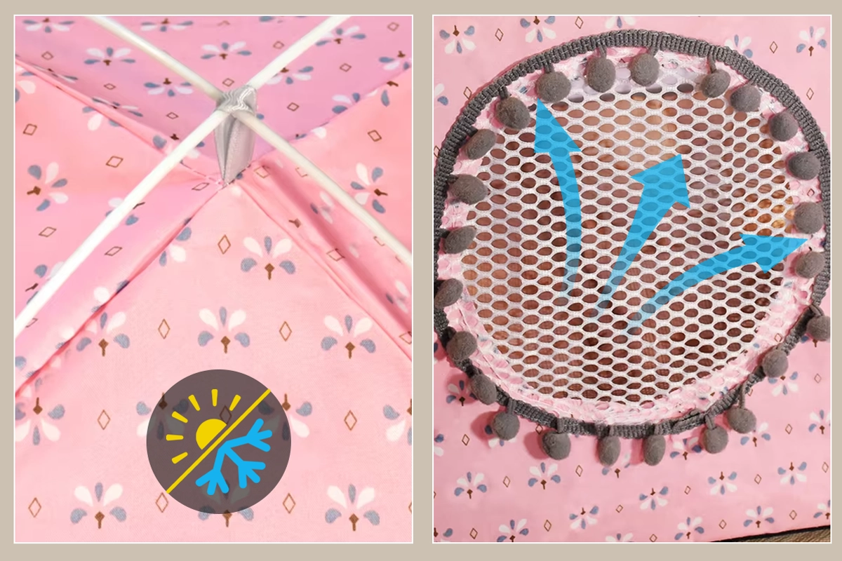 Breathable material keeps pets cool during warm days. Insulated walls also provide warmth when the air gets chilly.