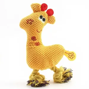 Tough little toy! Our dog plays rough, but so far no holes or tears. Bright colors, cute shapes, and she stays busy for hours. Highly recommend for playful pups.