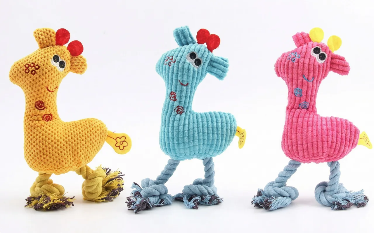 My pup absolutely loves this fleece toy. She runs around with it all day and hasn’t lost interest. The bright colors are so cute and it’s really gentle on her mouth.