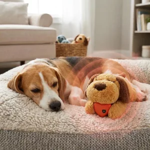 Our new puppy made the snuggle toy his best friend. The soft heartbeat sound calms him, especially when storms roll in. Haven’t had a sleepless night since.