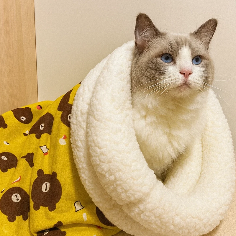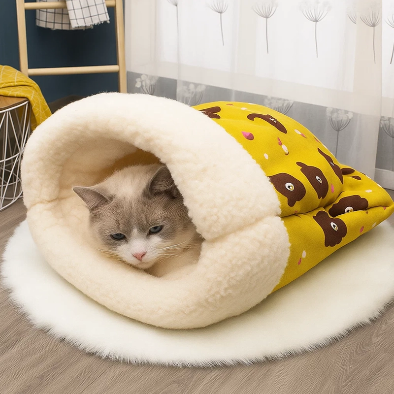 Cute Plush Sleeping Snuggle Bag Enclosed Cat Bed