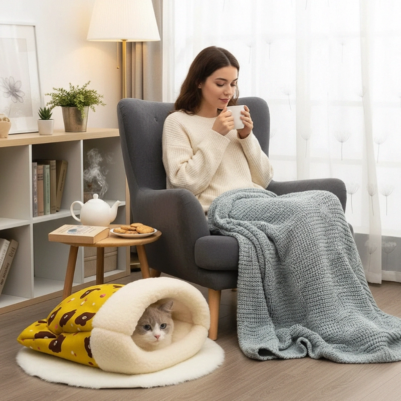 The Primdog cat bed offers a snug and gentle place for your cat indoors. Soft plush keeps your pet happy through chilly autumn evenings. Enclosed shape shields against drafts, making rest calm and secure. Adorable patterns add cheerful style to any cosy room.