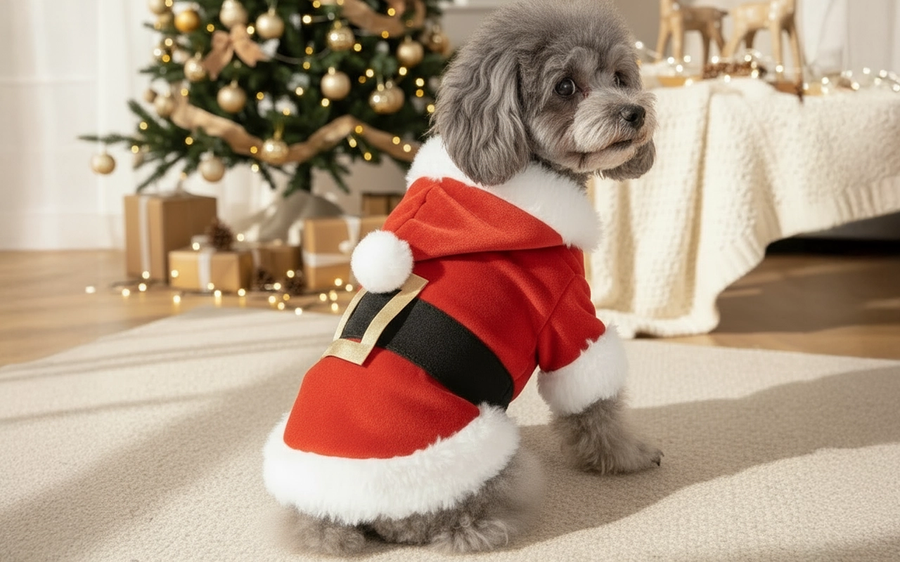 Dog Father Christmas Hooded Coat Santa Claus Costume