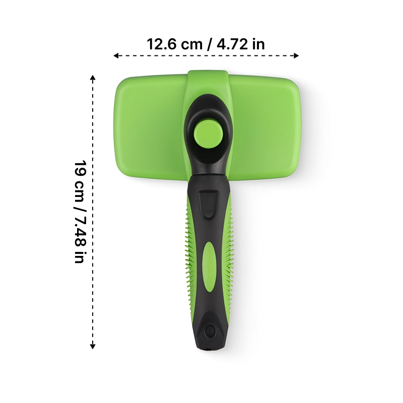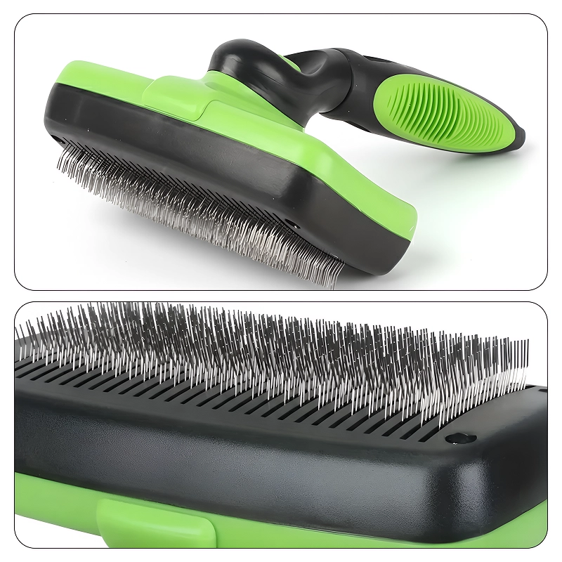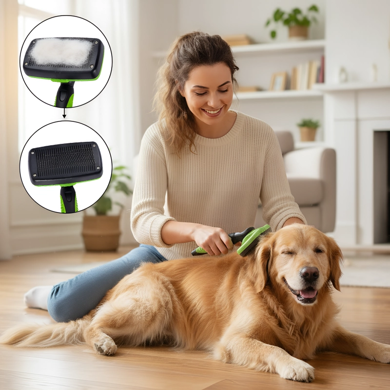 Really soft bristles so my dog never flinches. All the shedding fur comes off quickly, and I just press the button to clean. Super helpful for me!