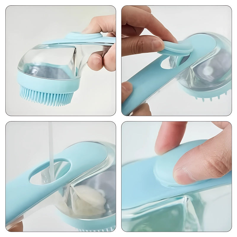 Dog Silicone Bath Brush Shampoo Dispenser with Long Handle