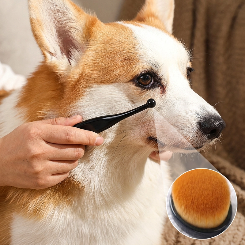 My little dog actually sits still while I clean around her eyes with this brush. The bristles are soft, and she doesn’t squirm at all. Cleanup is really fast.