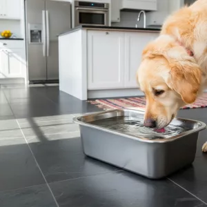 Our German Shepherd drinks a ton and this keeps her satisfied. I like how it looks on the kitchen floor, neat and shiny.