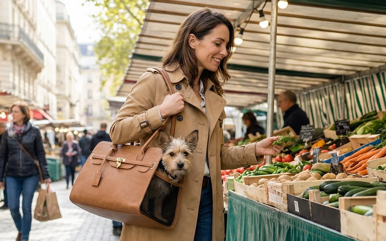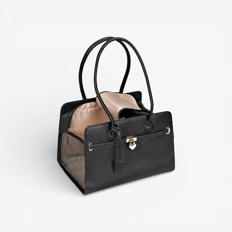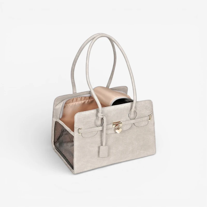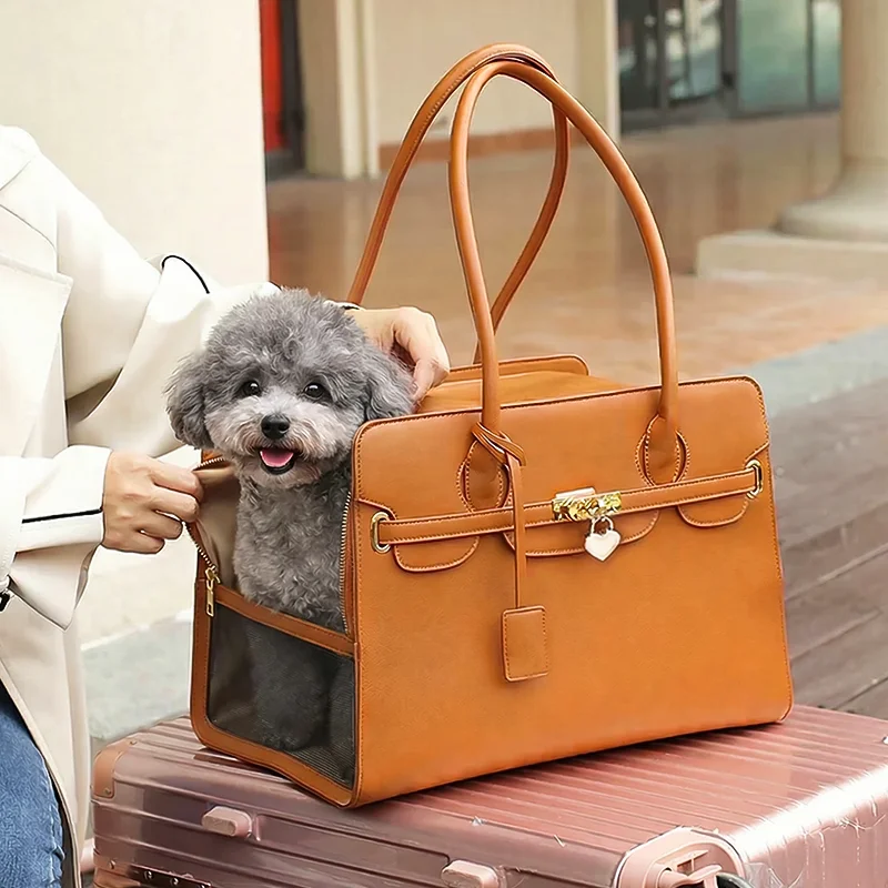 Leather Dog Carrier Handbag Elegant Pet Travel Tote