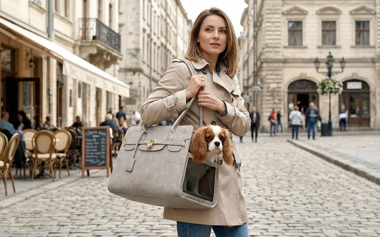 12 reviews for Leather Dog Carrier Handbag Elegant Pet Travel Tote