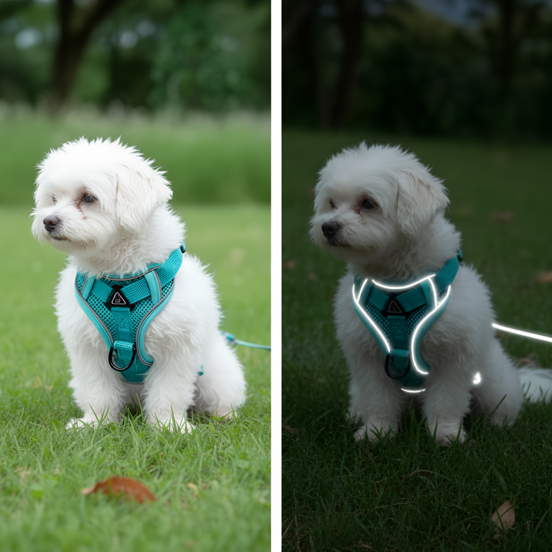 Every walk feels safe. The leash is sturdy, buckles hold tight, and the stitching glows so cars can see us after dark. Highly recommend for busy neighborhoods.