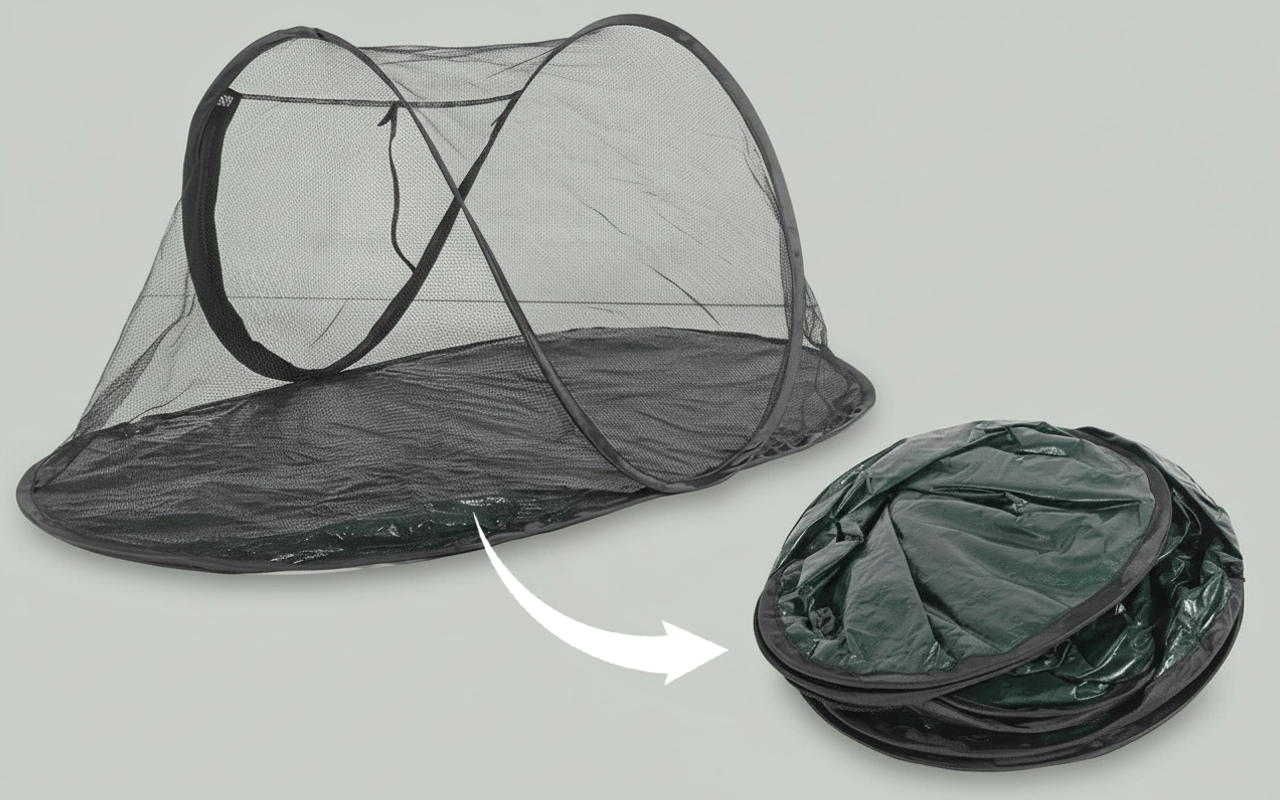This mesh tent keeps my dog safe from mosquitoes and lets him nap outside while I garden. He seems really cozy and calm in here.