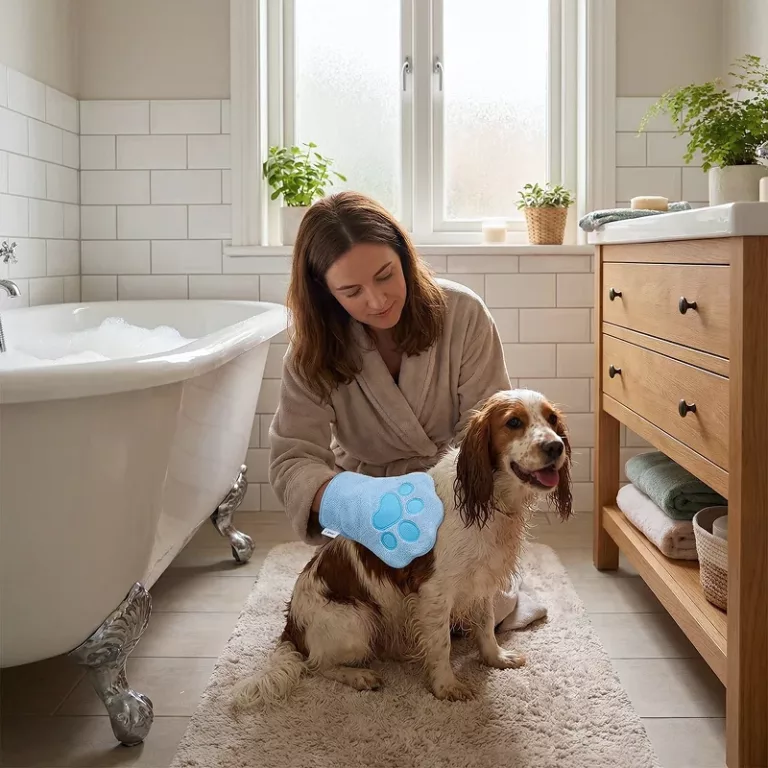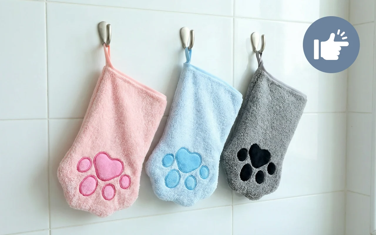 No more big wet towels piling up! I use the glove, hang it on the hook, and it’s ready for next time. It dries pets fast and is comfy to wear.