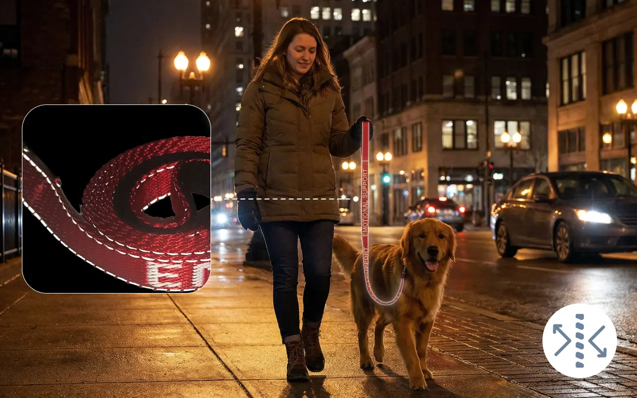 Really like the extra control this leash gives, especially when my dog gets too excited. The reflective stitching is perfect for late walks.