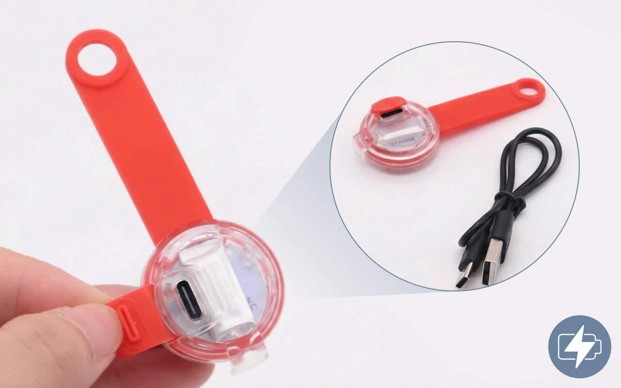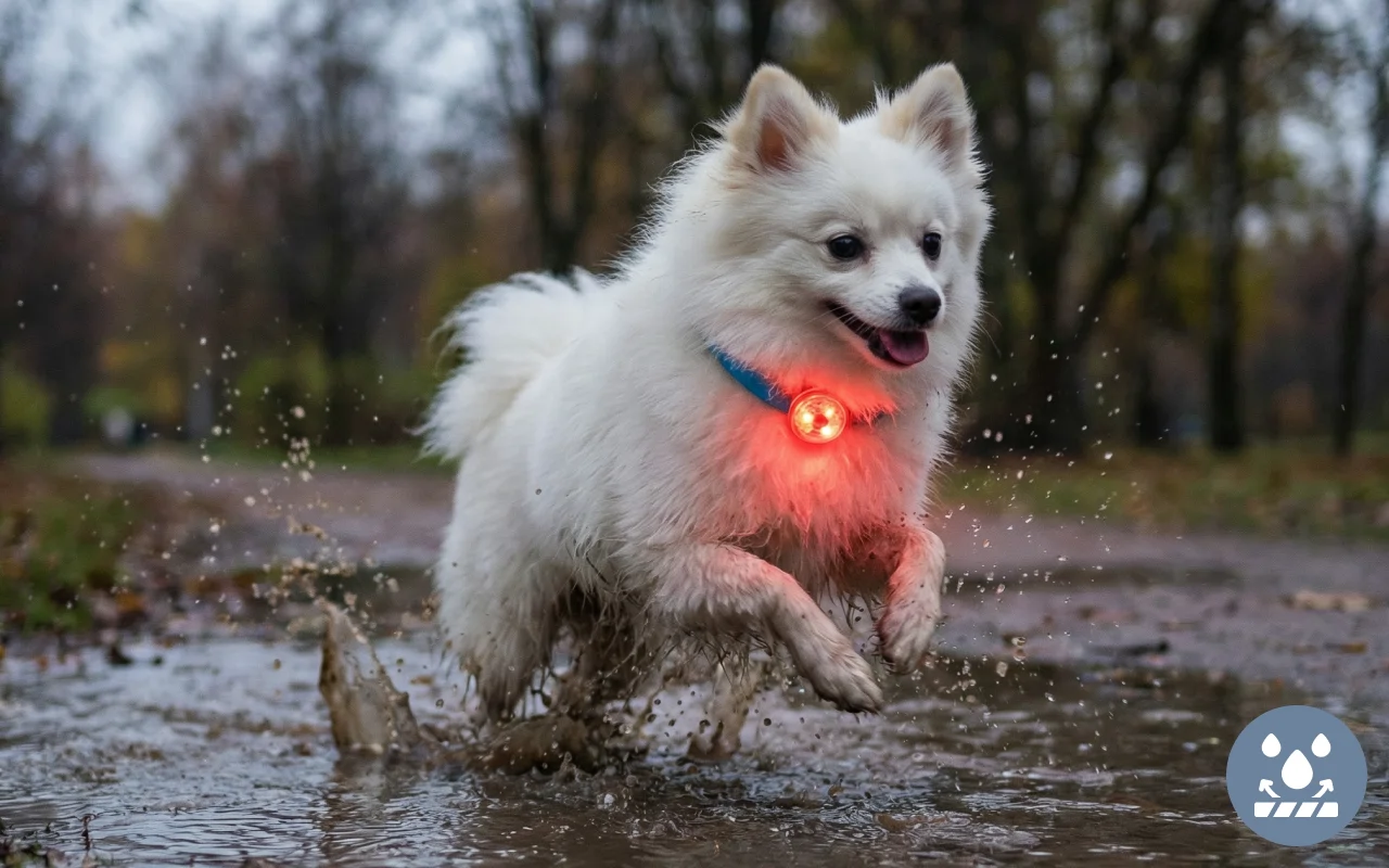 The waterproof tag works perfectly, even after heavy rain. My dog loves puddles, and the light keeps shining every time.