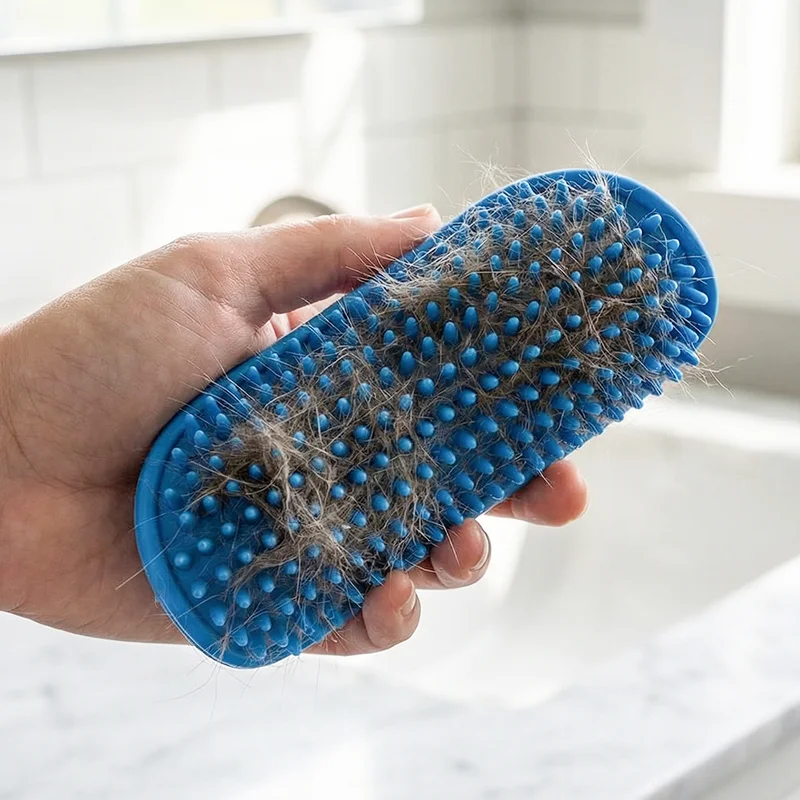 My dog used to hide at bath time but now comes running! The scrubber is comfy and even helps remove tons of loose fur.