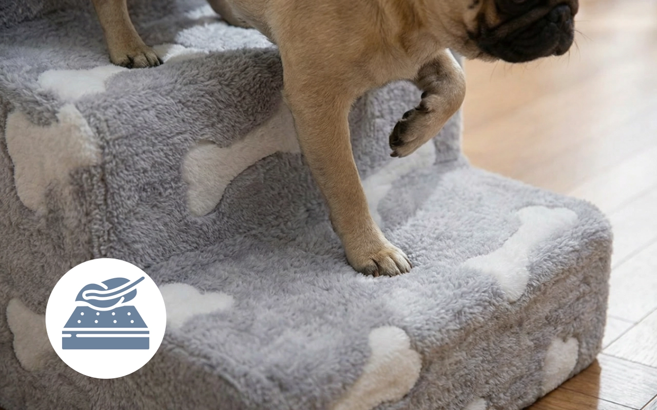 My pug can finally get on the bed without me needing to help. The stairs feel soft and steady, so I know he’s safe every time.
