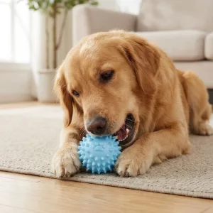 The spiky ball helps my older dog’s teeth stay clean between vet visits. He looks forward to playing with it every afternoon.