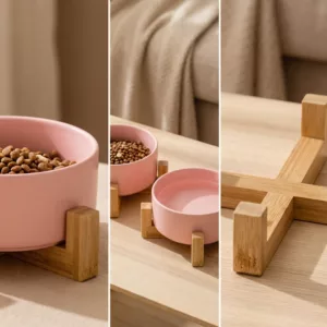 Bamboo stand keeps items in place while pets enjoy food. No slipping or tipping means peace of mind for everyone.