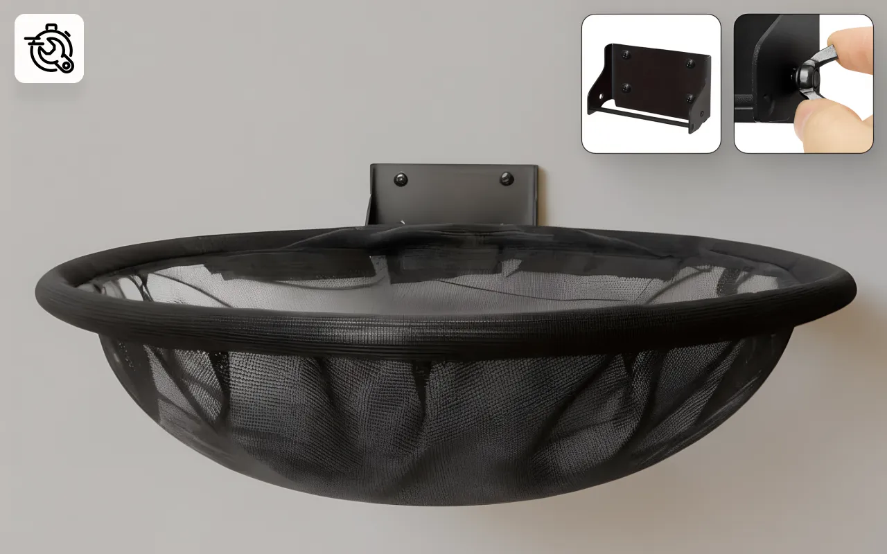 Mounting hardware and a guide make setup quick and simple. The bed removes easily if you wish to clean or move it.