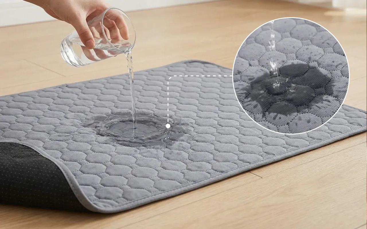 I use the pad under my dog’s food bowls, and it catches all the spills. After dinner, I toss it in the washer and it comes out looking new every time.