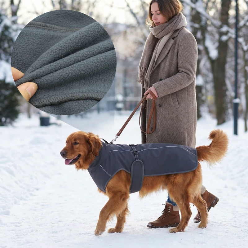 The reflective bits make evening walks much safer. My dog is easy to spot and stays snug even when it snows outside.