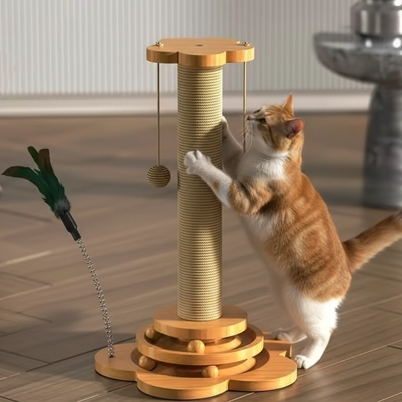 My cats love stretching their paws on the sisal. It’s safe, strong, and the hanging toys make it even more exciting for them.