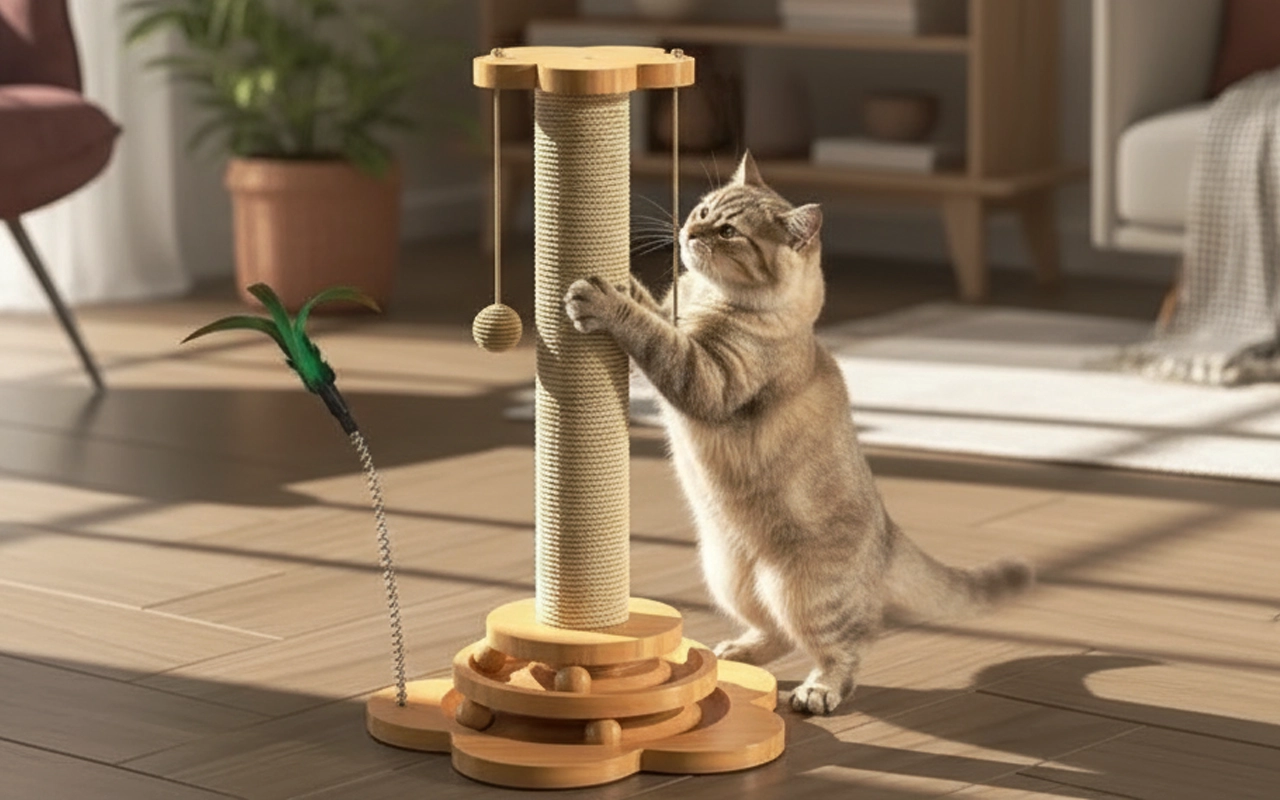 Sturdy wood and sisal ensure long-lasting use for active pets. Scratching, climbing, and playing remain safe every single day.