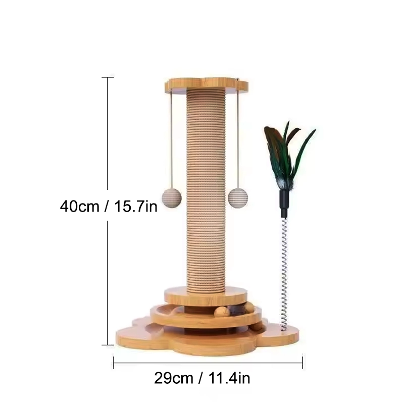 Wooden Cat Sisal Scratching Post with Hanging Balls